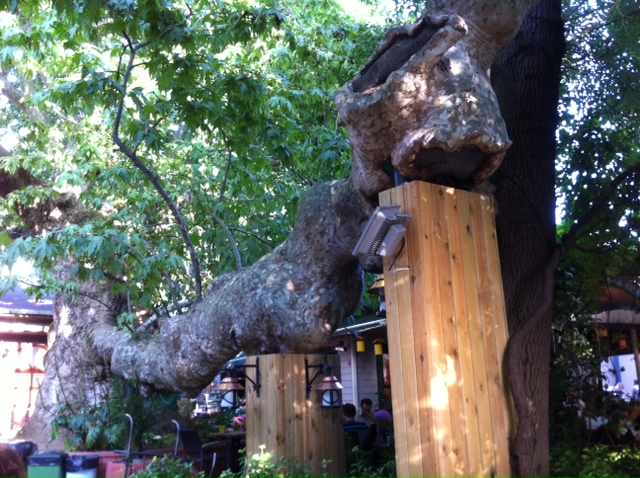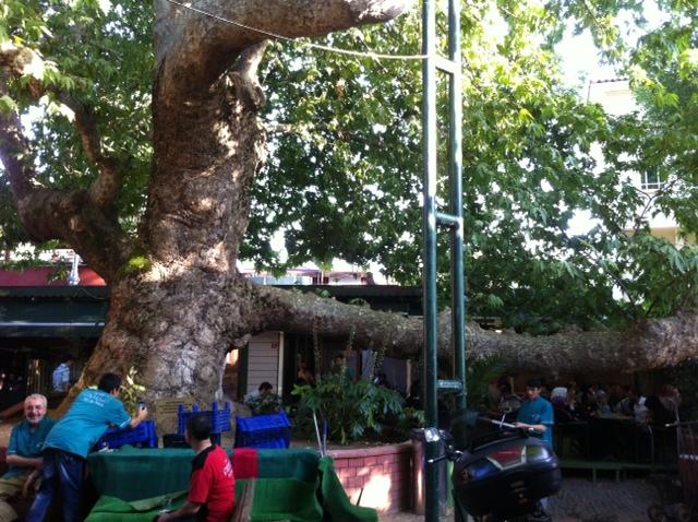 Located in Cengelkoy, Cinaralti is one of the most famous tea gardens for locals in Istanbul. It is on the Bosphorus, and called by the eight hundred years old sycamore (cinar) tree. Ten years ago, it was a small cafe, but now, it is full of people beneath the shadow of the gorgeous tree.