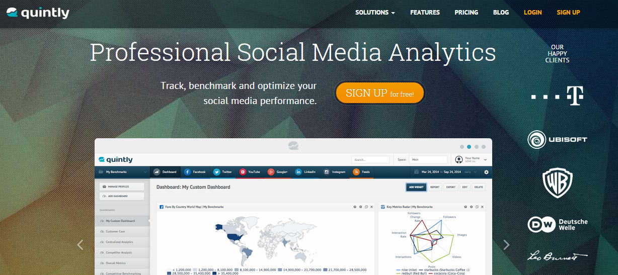If you want to create your optimal social media strategy, to track and optimize your social media performance and to compare it with the performance of the competitors, quintly is the tool that you need.