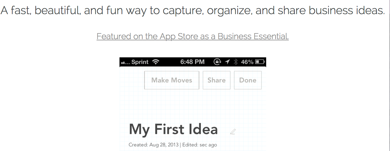 Elevatr is great tool for entrepreneurs with ideas, ideas that matter. It offers a fast, beautiful, and fun way to capture, organize, and share business ideas.
